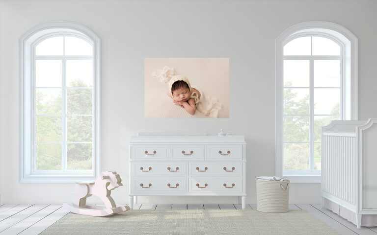 We don’t just send you on your way with digital images that will likely sit in a file on your computer or on a USB in a drawer. Your newborn session comes with a design consultation where we talk about which art pieces will work best for your lifestyle. We offer wall art, albums, matted prints and more.
